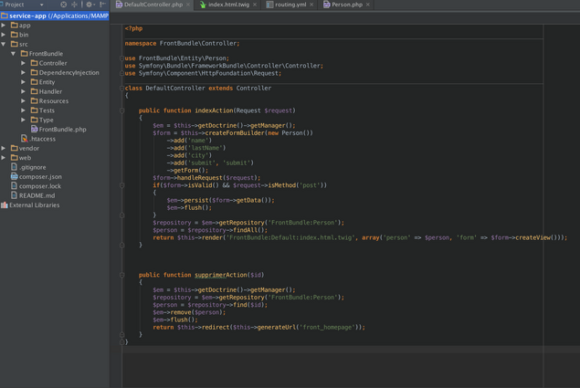 Symfony est un framework Open Source écrit en PHP ainsi qu’un set de composants accélérant la création d’un site web. Il est une référence à l’échelle internationale ; utilisé par plus de 300 000 développeurs dans le monde et par des projets d’envergure tels que Dailymotion, Yahoo, TED, National Geographic, Bla Bla Car ou Vogue...